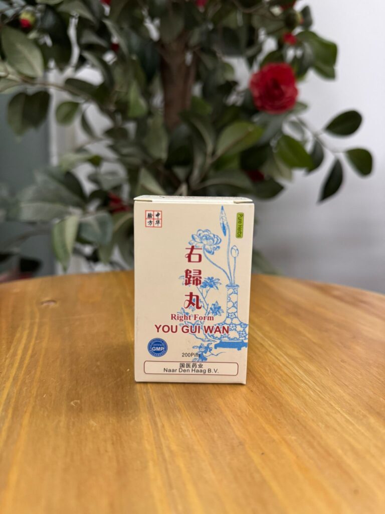 Composição: Radix Rehmanniae Preparata 39%, Rhizoma Dioscoreae 15%, Fructus Lycii 15%, Semen Cuscutae 10%, Radix Angelicae Sinensis 8%, Fructus Corni 8%, Cortex Cinnamonmi 5%